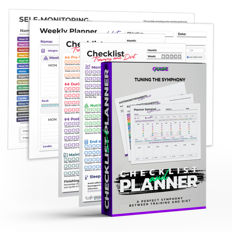 It includes a simplified checklist to keep your structured routines under control, whether at the gym or at home, and planner that helps you stay organized and gain clarity in your weekly and monthly planning, in a practical, intuitive and effective way, ensuring you never miss a step, even with a busy schedule!